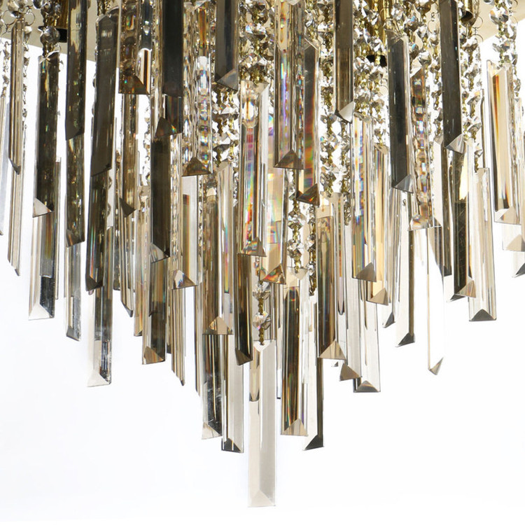 لوستر سقفی مدل Locs-2یکی از زیباترین و محبوب ترین لوستر های سقفی میباشد که تولیدی لوستر دکورابو طراحی وتولید نموده این محصول دارای 8 سرپیچ برای لامپ شمعی (E14) میباشد کفی این محصول از جنس استیل اصل بوده و زنگ نمیزند همچنین در کفی این محصول لامپ های LED ریز کار شده که شبها جلوه بسیار زیبایی به منزل شمامیدهد و شبها به عنوان نور مخفی یا شب خواب میتوان استفاده نمود کریستال های این محصول درجه یک میباشد و به هیچ عنوان مات نمیشود این محصول تماما طراحی و تولید لوستر هاتف بوده و با افتخار میتوان گفت محصول ایرانی میباشد